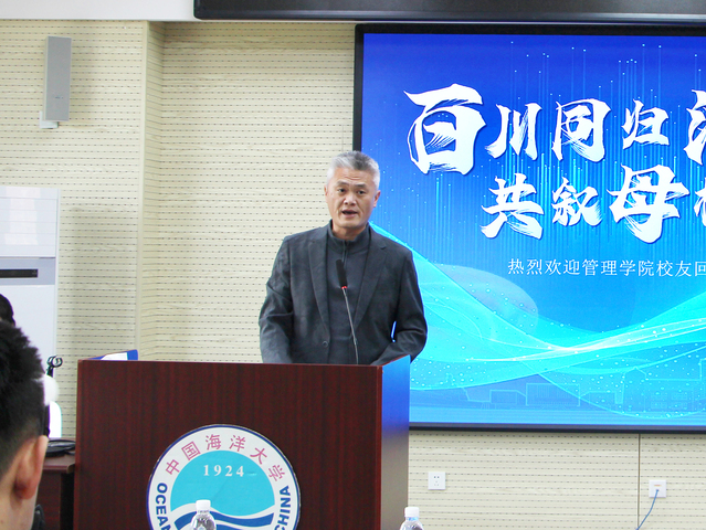 2025年10月25日,中国海洋大学建校101周年之际,中国海洋大学管理学院成功举办“百川同归海 共叙母校情”校友返校活动。学院教师代表、退休教师代表及各届校友共80余人欢聚一堂,共忆校园岁月,共话学院发展。学院党委书记金天宇主持活动。