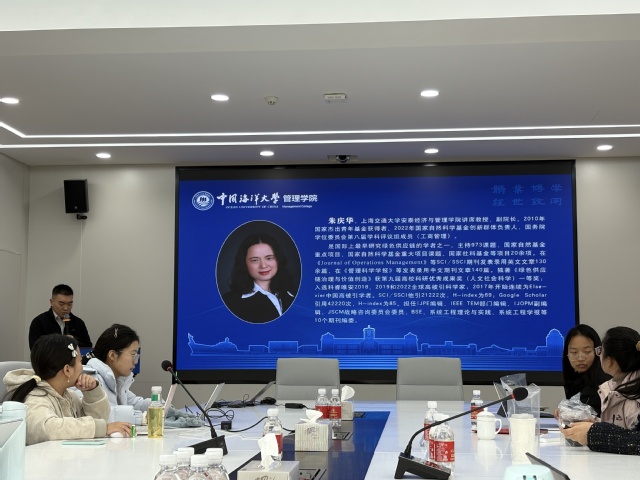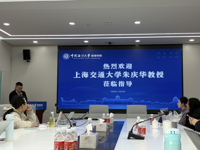 2025年11月25日(周二)上午,由中国海洋大学研究生院主办、中国海洋大学管理学院承办的海大百川讲坛系列专家讲座《供应链上的ESG创新研究》成功举办。本次讲座由上海交通大学安泰经济与管理学院讲席教授、副院长朱庆华教授担任主讲嘉宾,中国海洋大学管理学院副院长万骁乐教授主持,吸引了众多老师和同学前来参与。