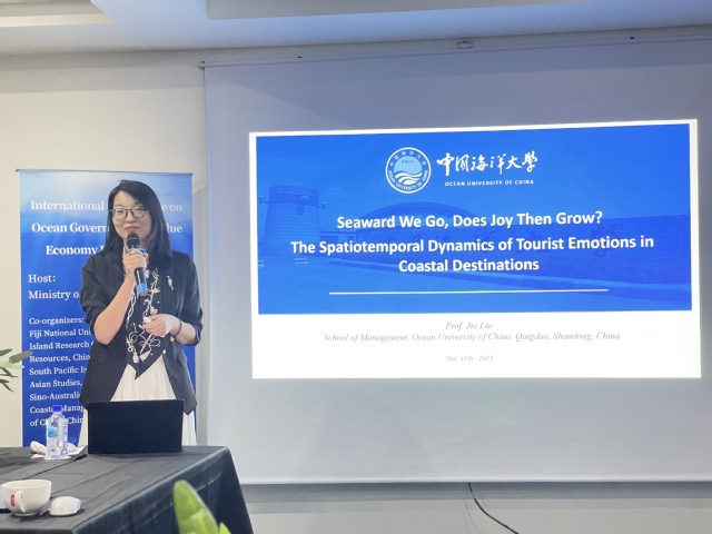 2025年11月10日-13日,由斐济渔业部、中国自然资源部海岛研究中心、斐济国立大学、斐济南太平洋岛国亚洲研究所和中国海洋大学联合主办的“海洋治理与蓝色经济发展”国际会议在斐济楠迪成功举办,中国海洋大学中澳海岸带管理研究中心承办“海洋空间规划与海岸带综合管理”分论坛。我校管理学院旅游学系刘佳教授受邀参会,并在分论坛中发表专题报告,分享了滨海旅游领域的研究成果。
