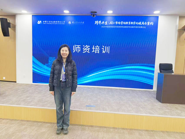会议期间,王举颖主任代表团队在教学成果展示专场作了题为《数智赋能·双驱动·三创新·六融合:市场营销复合型人才培养的改革与实践》的教学改革成果课题汇报,分享了管理学院营销与电子商务系近几年在市场营销教育教学改革与专业人才培养质量提升等方面的创新探索与实践成效,并荣获2025中国高等院校市场学研究会教学改革研究立项支持。戚昕副主任参与了师资培训,系统学习借鉴了其他高校的国家级项目申报策略、数智营销课程改革、虚拟教研室建设等前沿内容,为后续的市场营销教育教学工作积累经验。
