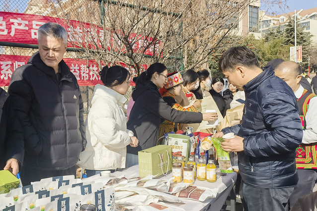 活动当日上午10时至13时30分,崂山校区北区教工餐厅十字路口的展销区人头攒动,茶叶、夏威夷果、猪肉干巴、香料、竹笋、木耳等系列特色农产品吸引了广大师生的眼球,营销与电子商务系师生党员、红旗智援博士团以及本年度“智营销三创赛”绿春赛道的团队代表等集体出动,化身绿春农产品“推介官”、“推销员”,师生们纷纷驻足咨询、选购产品,现场气氛热烈,展销产品全部被抢购一空。