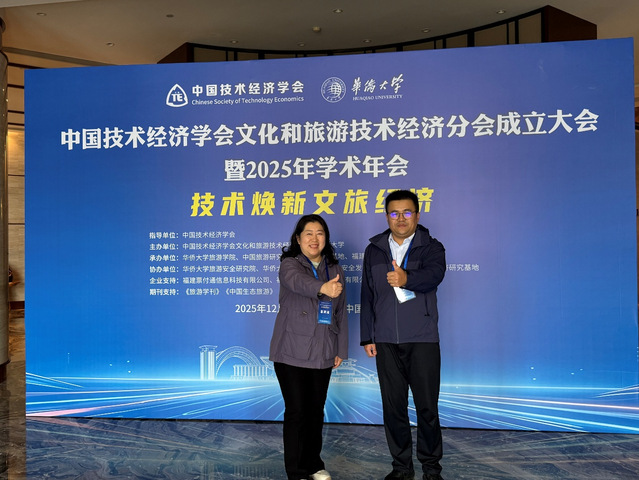 12月11至12日,中国技术经济学会文化和旅游技术经济分会成立大会暨2025年学术年会在华侨大学召开。会议汇聚了来自全国60多所知名院校、30多家文旅企业的专家学者和行业领袖,围绕“技术焕新文旅经济”展开深入交流。文化和旅游部科技教育司原司长孙若风、华侨大学副校长黄辉、中国技术经济学会副理事长黄检良、欧亚科学院院士马庆国教授、福建省文化和旅游厅政策法规处副处长欧星等领导、嘉宾出席开幕式并为分会揭牌,华侨大学旅游学院院长谢朝武教授主持开幕式。中国海洋大学管理学院旅游学系、MTA中心王新越教授、张生瑞副教授应邀参加了此次盛会。