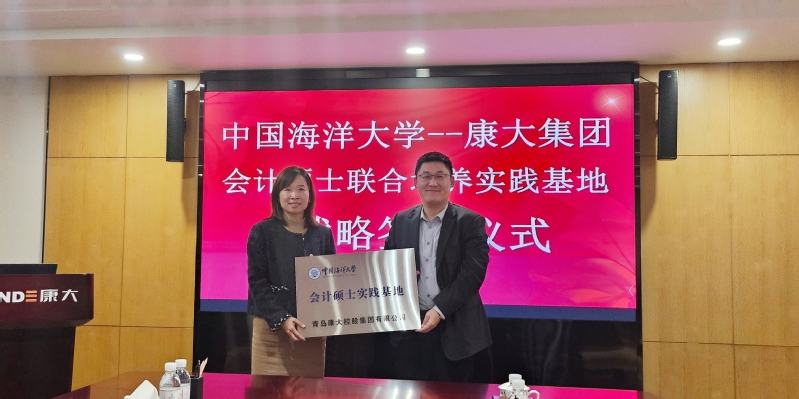 在与会人员的共同见证下,孙莹教授与张洪进总经理分别代表双方签署了实践基地协议,孙莹向张洪进授牌“中国海洋大学会计硕士实践基地”。