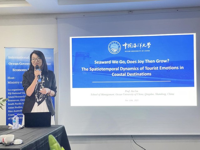 2025年11月10日-13日,由斐济渔业部、中国自然资源部海岛研究中心、斐济国立大学、斐济南太平洋岛国亚洲研究所和中国海洋大学联合主办的“海洋治理与蓝色经济发展”国际会议在斐济楠迪成功举办,中国海洋大学中澳海岸带管理研究中心承办“海洋空间规划与海岸带综合管理”分论坛。我校管理学院旅游学系刘佳教授受邀参会,并在分论坛中发表专题报告,分享了滨海旅游领域的研究成果。