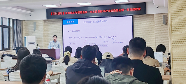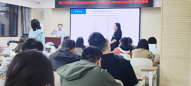 此次讲座,陈教授围绕“宽带中国”政策对投资者获取股票信息成本的影响等核心内容,为在场师生梳理了“宽带中国”政策与经济行为研究的关键思路,细致讲解核心概念与关键问题,分析研究过程中的实证设计和结果,阐述研究中遇到的困境与难题,并在讲座的最后叙述了此次研究的最终结果,揭晓了研究答案。