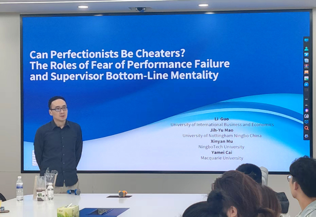 本次讲座中,毛日佑教授围绕其近期发表于Journal of Business Ethics(FT 50)论文Can Perfectionists Be Cheaters? The Roles of Fear of Performance Failure and Supervisor Bottom-Line Mentality展开重点分享。