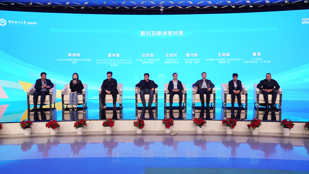 山东省管理学学会会长、中国海洋大学管理学院院长王竹泉教授、特锐德集团董事长于德翔教授分别致辞,强调建议与会代表积极深入探讨研究在百年不遇大变局背景下管理学理论创新和企业创新发展的方案路径,为管理部门和企业决策提供咨询。中国海洋大学管理学院党委书记金天宇教授主持会议,副院长李志刚教授主持期刊及媒体编辑面对面交流活动。相关编辑介绍了各家期刊和媒体围绕党的中心工作和“十五五”发展战略的重点组稿方向。名誉长李志军教授、副会长张可成教授出席会议。山东省管理学学会名誉会长、秘书长曹洪军教授主持了学会第六届第三次理事会,讨论了相关事项。理事会决定山东省管理学学会2026年学术年会暨第六届第四次理事会由山东青年政治学院承办。