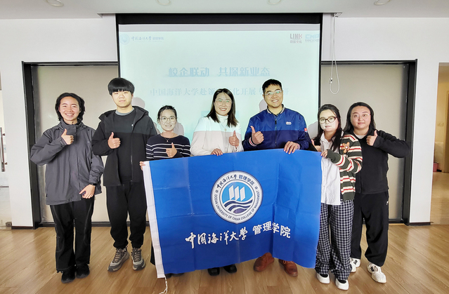 2025年11月14日,中国海洋大学管理学院工商管理系龙玉洁老师、旅游管理系王红玉老师,带领本科生连振江、王雯瑶、张月馨,走进青岛国家广告产业园区重点企业——青岛领客文化传播有限公司,围绕“立足青岛实际推动文化新业态发展研究”开展调研。领客文化创始人王观龙先生、运营总监郭孟娜女士与青岛广告产业园运营管理中心纪晓冬先生共同出席活动,与师生进行了全方位深度交流。