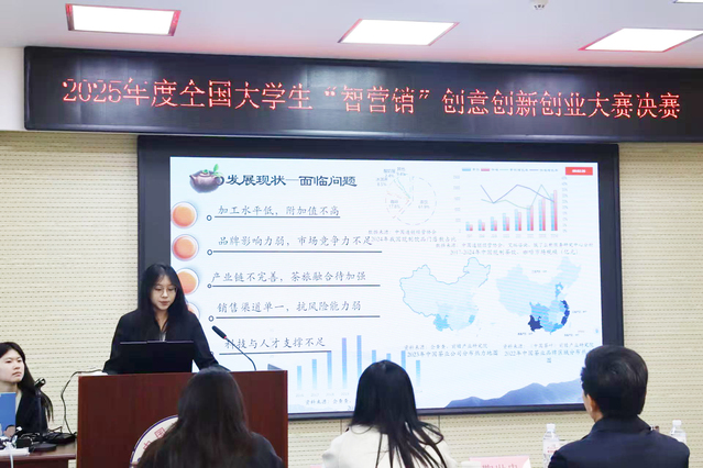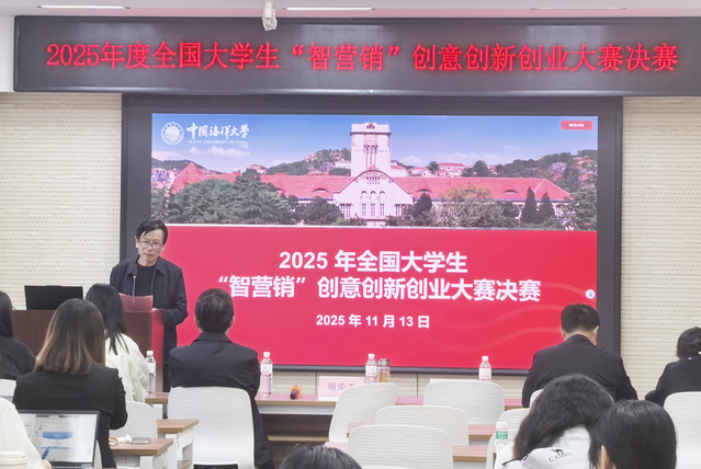 2025年11月13日下午,由中国海洋大学管理学院主办,联合云南省绿春县人民政府、山东省乐陵市朱集镇人民政府、蒙阴县岱崮镇人民政府、中科密罗木科技有限公司、青岛晓阳春有机茶有限公司等多家单位协办的第十七届全国大学生“智营销”创意创新创业大赛决赛于中国海洋大学管理学院顺利举办。