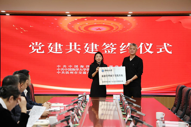 为创新党建工作载体,提升基层党组织建设水平,进一步拓展党建工作内涵,以高质量党建引领校地合作向纵深推进,12月18日上午,中国海洋大学管理学院与滨州市交通产业集团举行党建共建暨MTA实践基地签约仪式。活动通过实地参观、座谈交流与签约授牌,共同开启了双方在党建共建、人才共育、发展共赢的新篇章。中国海洋大学管理学院党委书记金天宇,交通产业集团党支部副书记、董事、总经理刘美荣以及双方党员、群众代表共同参加活动。