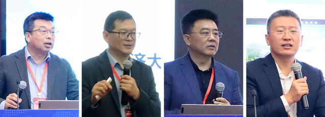 姜忠辉(左一)致开幕词,张福利(左二)、许涛(左三)、乔宝刚分别作主旨报告