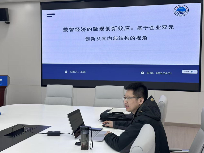 2026年4月1日,海洋新质生产力与技术经济研究团队举办第二期读书会。本期读书会由王京老师主讲,题目是“数字经济的微观创新效应:基于企业双元创新及其内部结构的视角”。读书会由李志军老师主持,部分团队成员和学生参加。